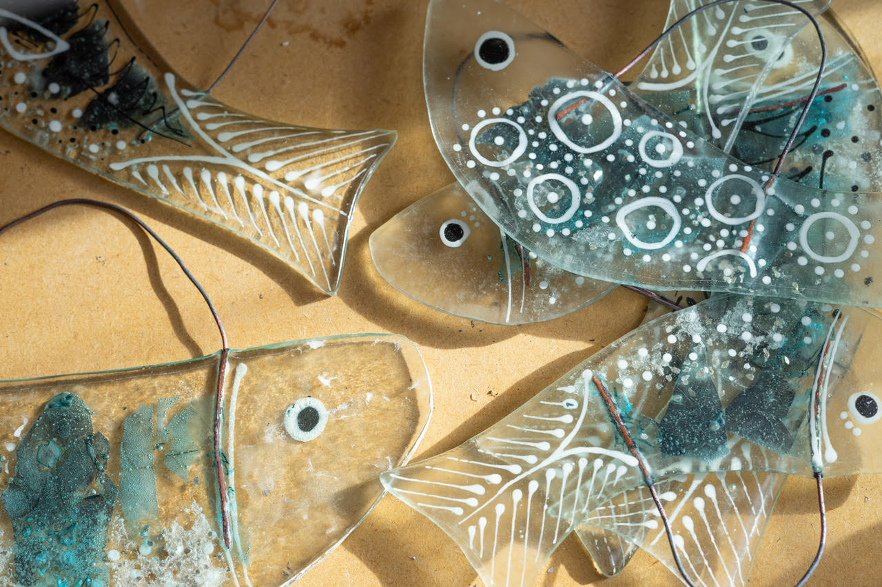 working across various media including glass, print, collage and stitch.